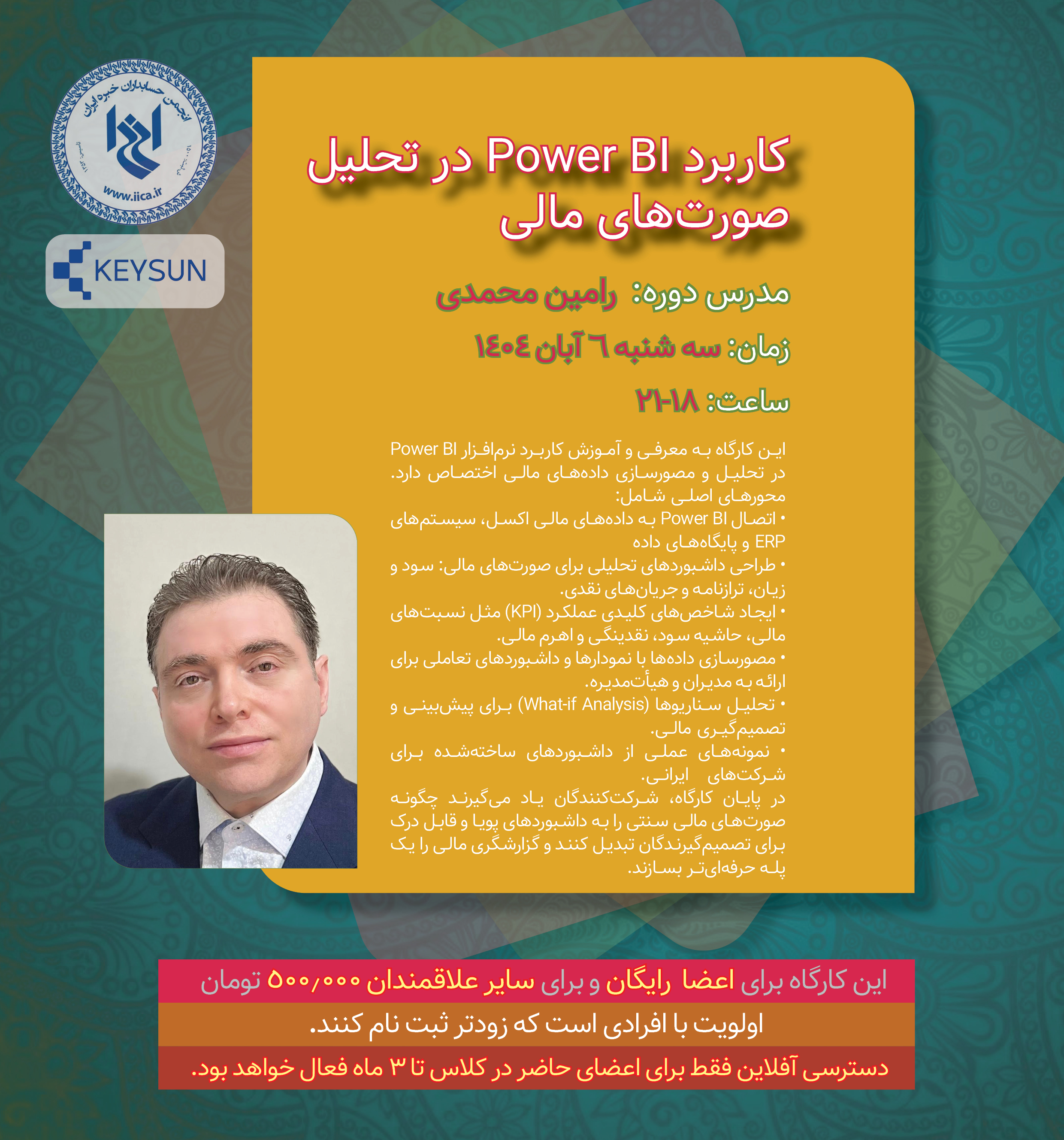 این کارگاه به معرفی و آموزش کاربرد نرمافزار Power BI در تحلیل و مصورسازی دادههای مالی اختصاص دارد. محورهای اصلی شامل: