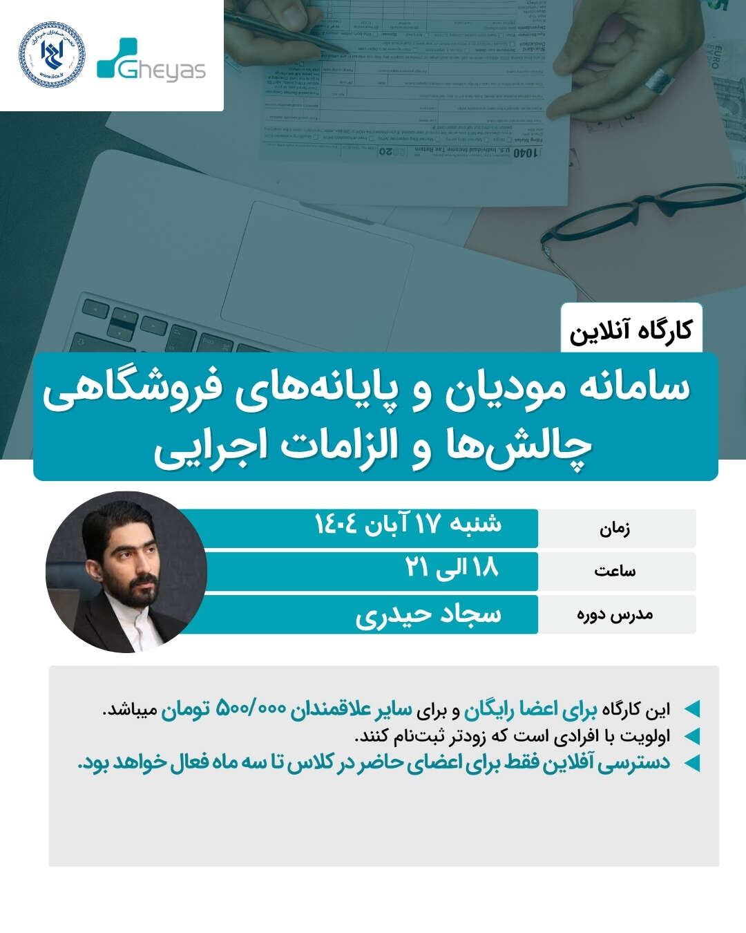 این کارگاه به معرفی کامل سامانه مودیان مالیاتی و پایانههای فروشگاهی میپردازد و اثر آن بر فرآیندهای حسابداری و گزارشگری شرکتها را بررسی میکند. محورهای اصلی شامل: