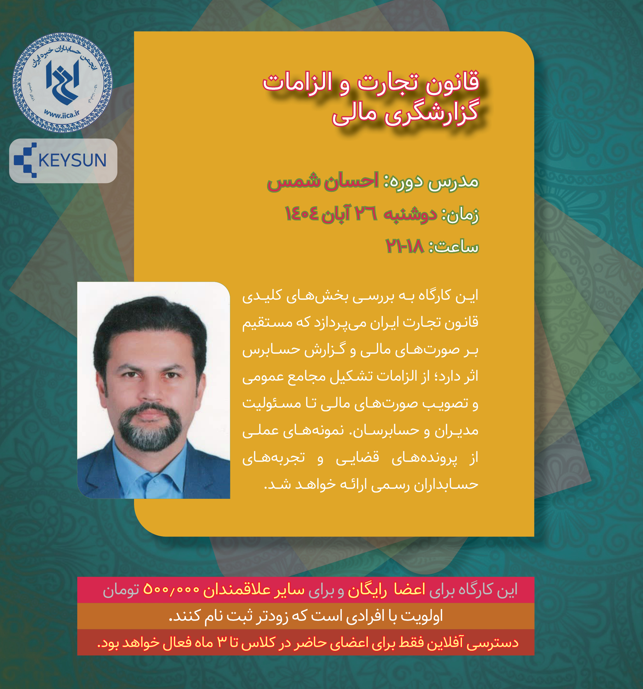 انجمن حسابداران خبره ایران با همکاری شرکت داده پردازی کیسان برگزار می کند: